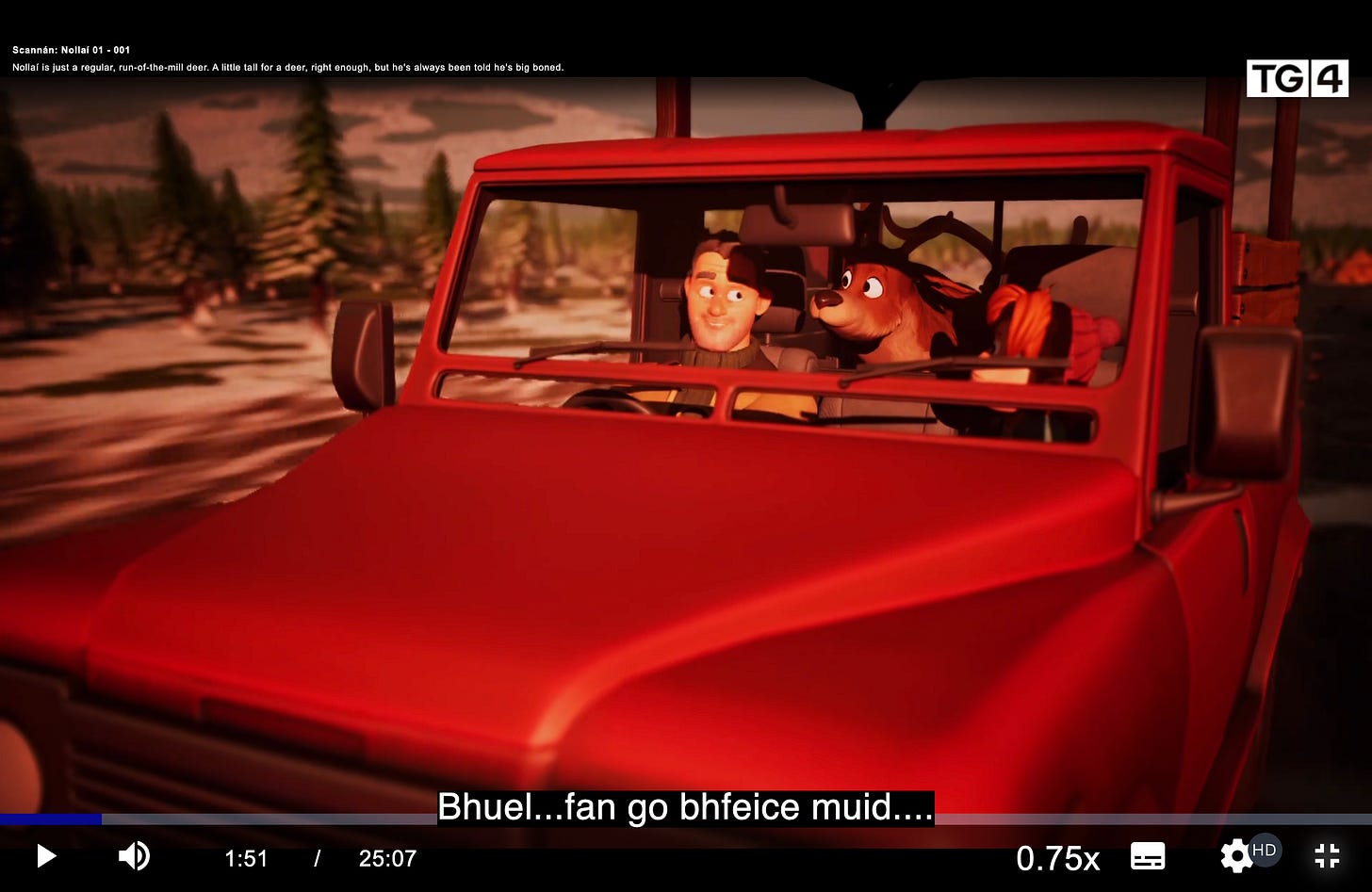 TG4, Irish language public service television, offers a range of programming. A new series, Saol Ella (Ella’s Life) with teenage characters, offers lots of idiomatic Irish. Google translate isn’t always reliable, but I use the camera function on my phone to translate the Irish captions into English when I get stuck. (Just put Google translate into camera mode on your phone, pause the video, hold your phone up to the screen—instant translation!) You can also slow the video down in the settings. Want something easier? Try Nollaí, a short children’s video also with captions.
